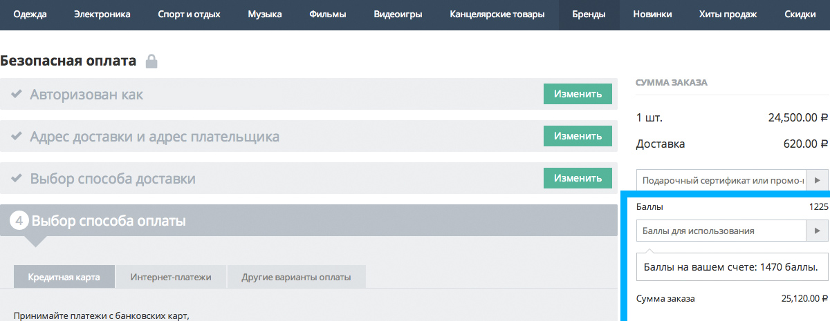 Расплачивайтесь бонусными баллами